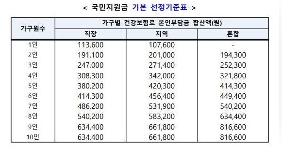 그리고 건강보험료 기준은 아래 사진과 같습니다.