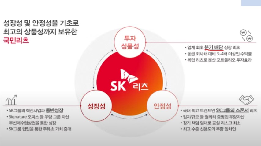 sk리츠의 장점은 배당금을 분기 배당으로 지급한다는 사실입니다.